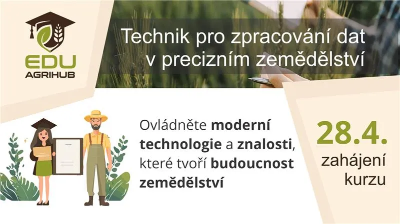Připravili jsme pro vás nový vzdělávací portál eduAgrihub, který rozšiřuje vzdělávací aktivity Agrihubu v oblasti digitálního a precizního zemědělství. Portál vznikl s cílem nabídnout přehledné prostředí pro online kurzy, odborné materiály a profesní vzdělávání zaměřené na moderní technologie a práci s daty v zemědělství.